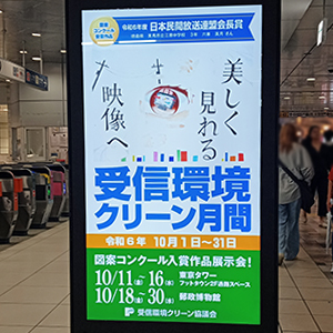 本月間中は、建造物障害対策・家庭用テレビ受信ブースター(増幅器)障害対策・電気雑音障害対策・無線局障害対策を柱に、関係団体等の協力を得て、セミナー・講習会の開催、相談所の開設及び地方公共団体や建築主への働きかけ等を実施するとともに、日本放送協会、一般放送事業者各社の協力のもとに広報番組を放送するほか、専門紙等への記事掲載、ポスターの掲示、リーフレットの配布、デジタルサイネージによる動画広告等幅広い周知・広報活動を行うこととしております。
